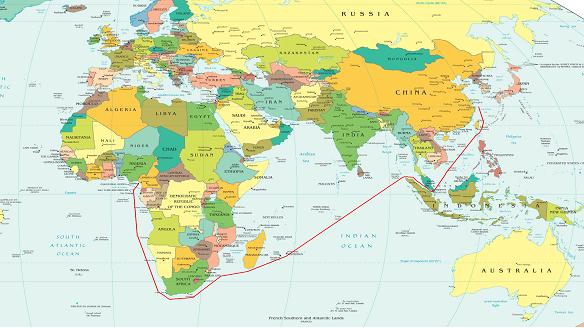 繞行好望角後,駛向赤道幾內亞附近的海域(東經XXX,南緯XXX),順利到達此次航次的目的地。
